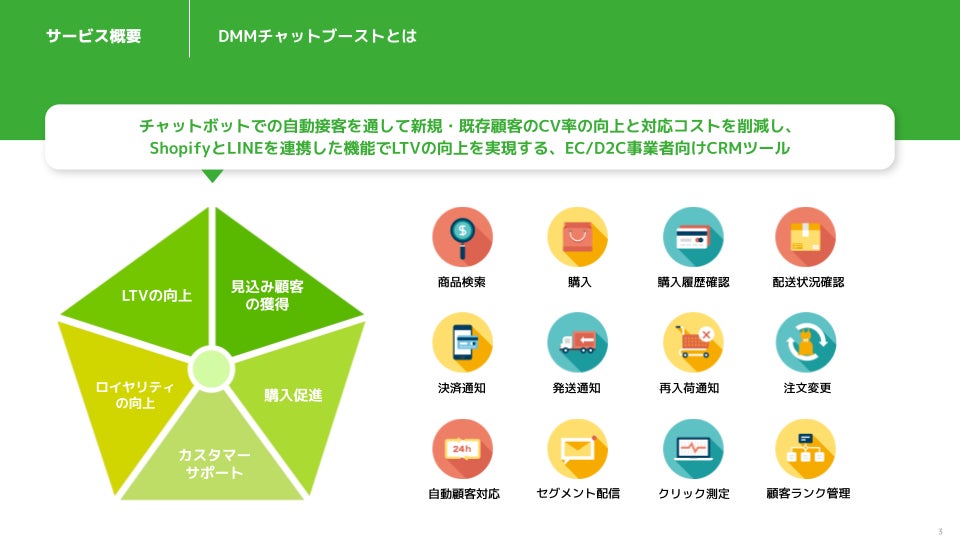 なかでもDMMチャットブースト for ECはEC事業者に特化したサービスで、LINEを活用することで、顧客対応を効率化しマーケティングを最適化します。