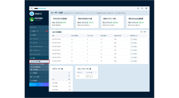 顧客リストやユーザーのLINE上のアクションデータなどをCSVで抽出し分析ができる機能です。