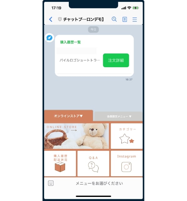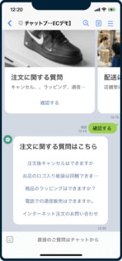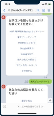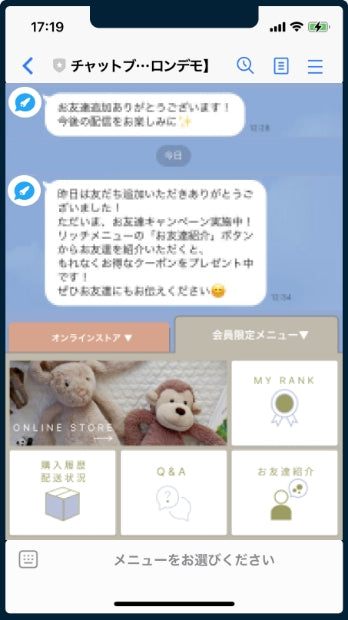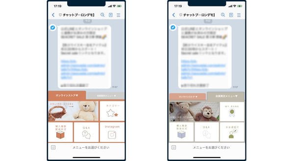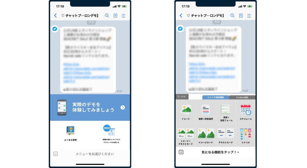 トーク画面の下部に配置できるメニューを作成でき、ボタンの配置やユーザーアクションなど複雑な設定を簡単に行える機能です。