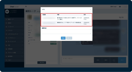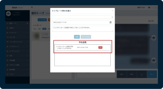 挨拶や質問への回答など、頻度の⾼いメッセージ内容を定型⽂として登録できます。