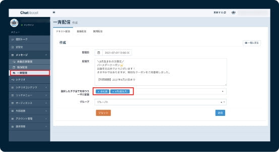 ユーザーに付与したタグなどを分析し、それらを配信や個別対応で活⽤することができます。